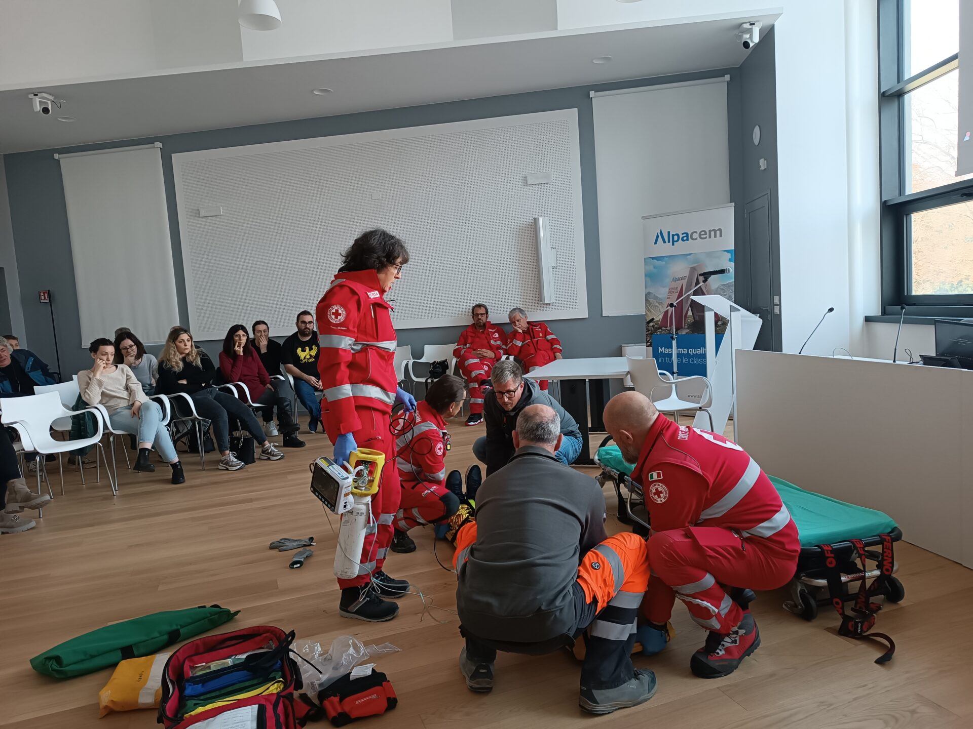 L’iniziativa ha coinvolto oltre quaranta persone tra i dipendenti di Alpacem Cementi San Vito al Tagliamento, i colleghi di Alpacem Calcestruzzi e i Volontari della Croce Rossa Italiana, e con la partecipazione di INAIL – Direzione Regionale Friuli Venezia Giulia. Il Delegato Regionale della Croce Rossa Italiana per l’Emergenza, Michele Asaro, ha illustrato le attività principali della Croce Rossa, nell’ambito delle emergenze, con l’obiettivo primario di essere sempre pronti ad intervenire fornendo assistenza socio-sanitaria alla popolazione in caso di disastri o calamità. Successivamente, si è svolta una sessione pratica di simulazioni e prove di intervento condotte dai Volontari del Comitato CRI di Casarsa con il coinvolgimento della squadra aziendale di primo soccorso di Alpacem.